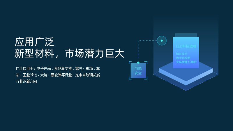 科技玻璃廣泛應用于:電子產品、商場寫字樓、家具、機場、車站、工業領域、大廈、新能源等行業,是未來玻璃發展行業的新方向。